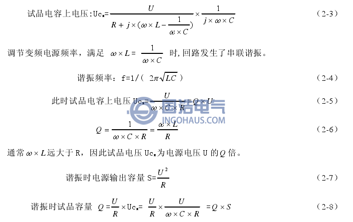 R:為串聯(lián)諧振回路的等值電阻,包括勵(lì)磁變壓器等效到高壓側(cè)的內(nèi)阻、高壓電抗器內(nèi)阻、試品內(nèi)阻以及試驗(yàn)電暈損耗等值電阻等。